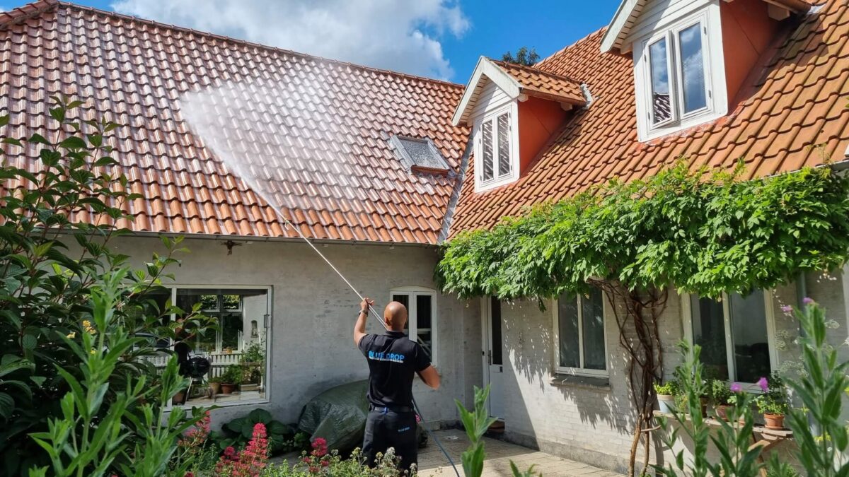 Hos Blue Drop tilbyder vi professionel algebehandling af tage, facader og fliser. Vi hjælper både private og erhverv med at fjerne alger og beskytte overflader mod fremtidig vækst.